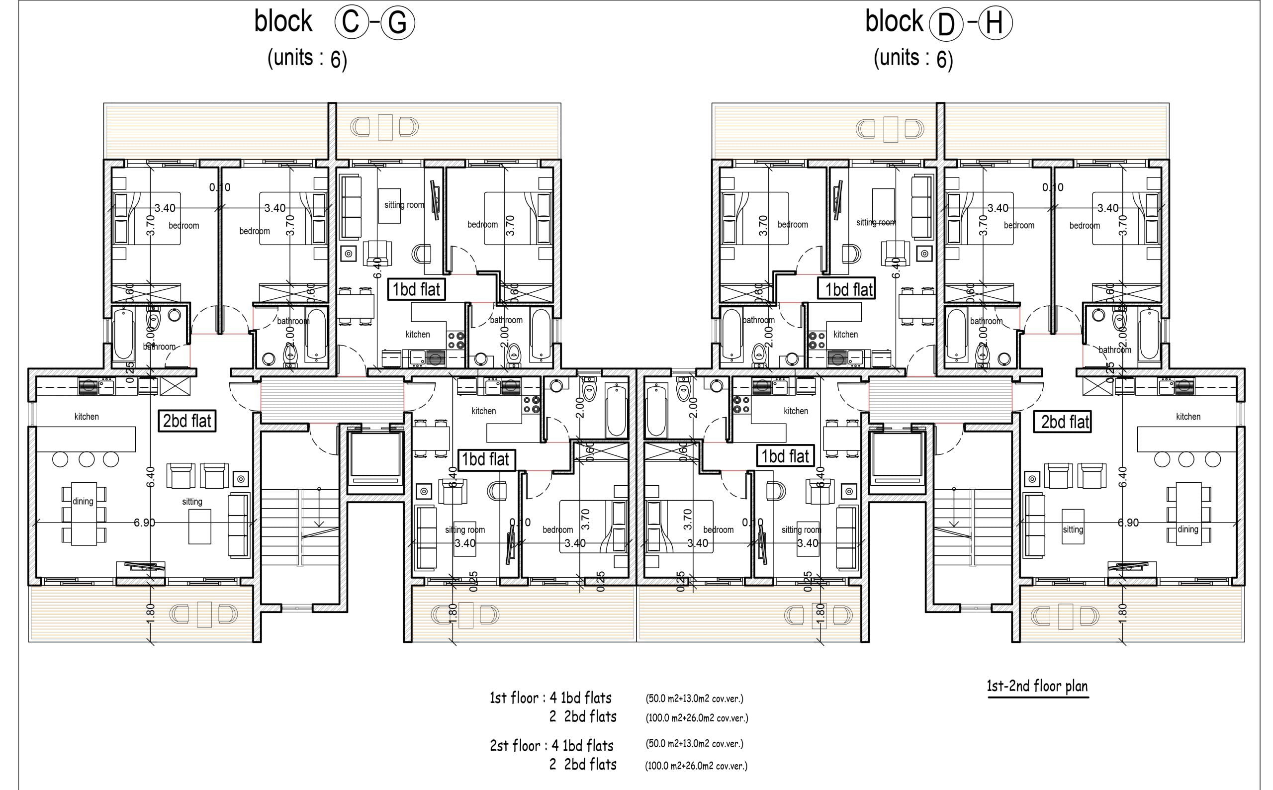 104 נכסים בגדלים מגוונים: החל מסטודיו ועד דירות של 3 חדרי שינה: 50 ועד 122 מ"ר.